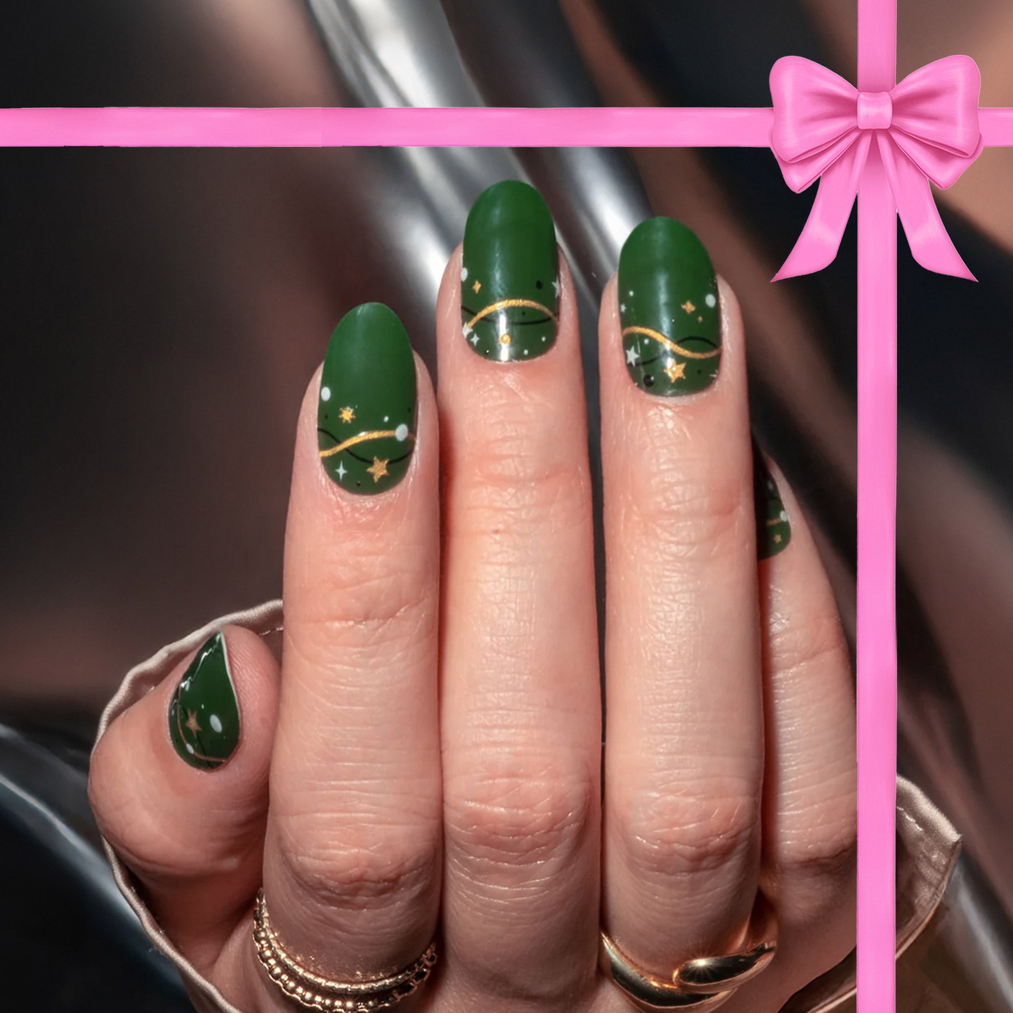 Gold and white ornament details over a green base are everything you need to get into the swing of things this holiday season.